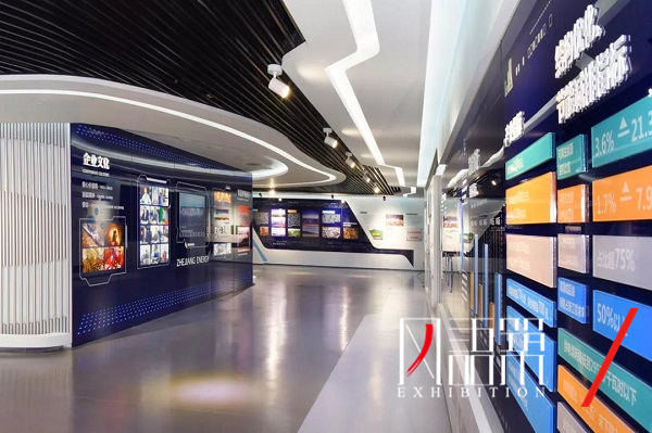 浙能集团展示厅以浙江能源集团的印象、概况、展望为展示线索,深度挖掘浙能集团发展内涵,重点展示特色产业、企业风采等内容。展厅顺应建筑优势,保留序厅玻璃幕墙,引自然光入馆,打造绿色阳光展馆。艺术化提炼新能源、风力发电等产业符号,将数字沙盘、VR影院等现代声光电技术智能化融于多项展示环节,结合“大数据+浙能产业”、“云计算后台数据集成”等方式。打造一座不可复制的专属展馆。